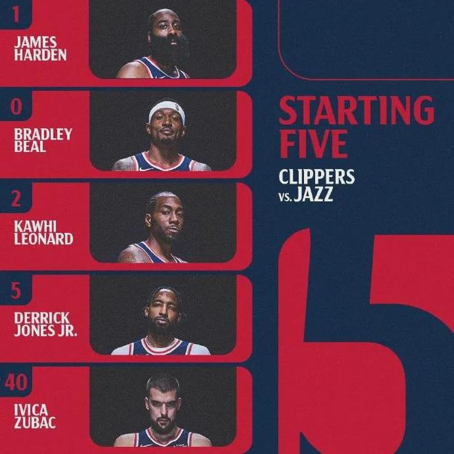 等等,本场比赛爵士首发摆出了马尔卡宁+凯斯勒双塔,但快船却依然让伦纳德出任首发4号位,大力气交易来的科林斯则打替补......泰伦卢的战术布置排兵布阵总是那么出乎意料。