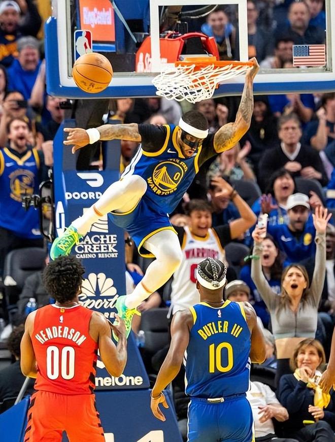 但勇士队的穆迪却抓住机会飞身上篮,加上波杰姆斯基的突外连投,直接将比分拉开。