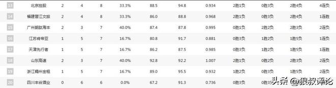 CBA最新排名:京粤6连胜争第1 新疆魔鬼主场2连败 仅1队0胜6负