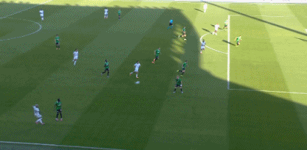 第12分钟,克里斯坦特不停球凌空挑射,皮球落到顶网上