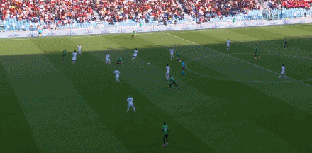 第67分钟,差点运气!佩莱格里尼面对门将挑射击中立柱弹出
