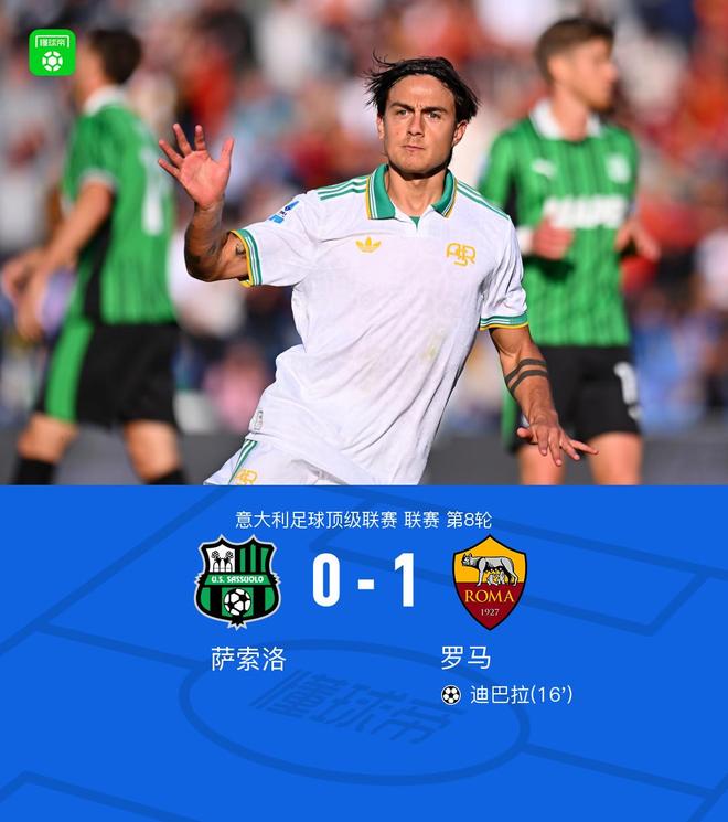 罗马客场1-0萨索洛,迪巴拉一击制胜,佩莱格里尼中柱
