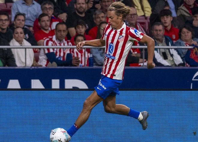 第39分钟,马竞终于进球了。小西蒙尼突入禁区右侧,随即把球分给阿尔瓦雷斯。阿尔瓦雷斯停球后凌空抽射,皮球应声入网!身价1亿欧元的阿尔瓦雷斯本赛季14场打进9球。随后,格列兹曼补射破门,但因为越位被吹掉。半场结束,马竞1-0领先圣吉罗斯联合。