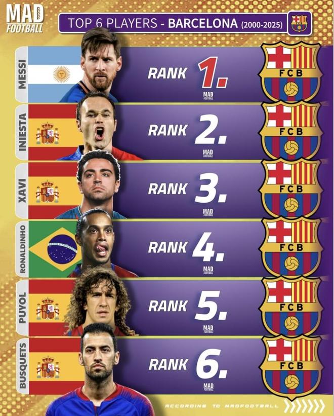 近日,MAD Football 发布了《2000—2025 巴塞罗那&皇家马德里前六球员榜》。巴萨榜首是梅西,皇马这边则由C罗领衔。榜单一出就炸锅:有人质疑巴萨阵容是否“情怀加成”,把防线价值低估了?也有人反驳皇马更看重结果导向,“总进球”和“总冠军”到底哪个更能代表贡献?还有声音认为齐达内的球员时期是否被教练荣誉“带飞”?