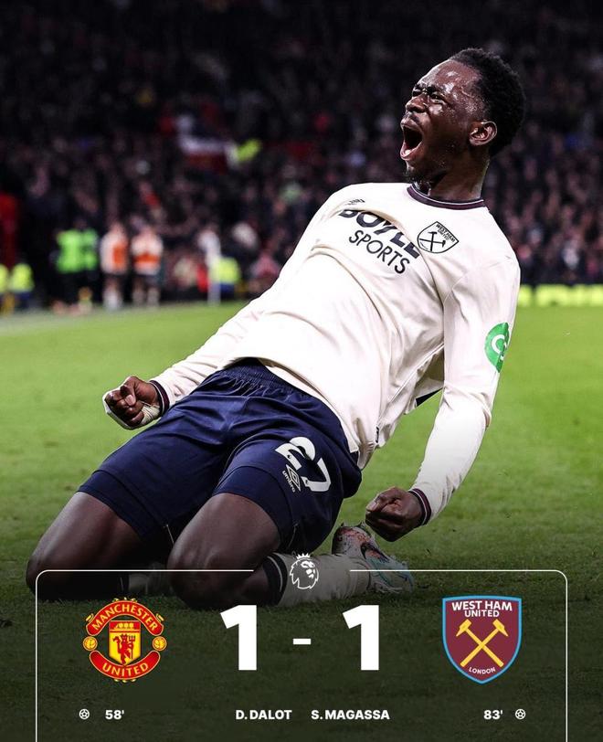 随后曼联的老毛病又来了,领先后的防线松懈,第83分钟,西汉姆右侧角球开出,鲍文前点一蹭,本来马兹拉维已经门线救险,却将球解围到对方脚下。马加萨面对大好机会冷静推射入网,1-1准绝平。煮熟的鸭子飞了,曼联不仅丢掉2分,还错失重返前五的最好机会。目前仅排名联赛第八,阿莫林的压力又来了。