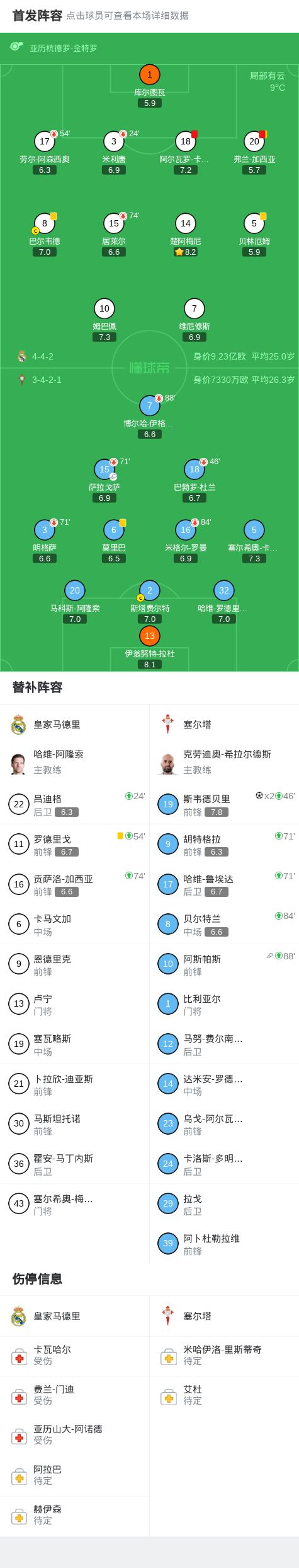 剑南春|九人皇马0-2塞尔塔,斯韦德贝里双响,米利唐伤退